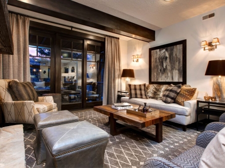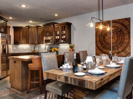 CONTEMPORARY MOUNTAIN DESIGN – SOPHISTICATED COMFORT… From the moment you enter this Park City gem it’s clear that you’re in for an exceptional experience. The attention to detail is immediately apparent. The calming color and texture palette is designed to create a sophisticated yet relaxed and intimate atmosphere. The floorplan is open and inviting. The kitchen and dining room flow seamlessly into the living room making gathering with family and entertaining with friends a breeze. The Living Room, with rustic stone and timber accents, is the ultimate space to kick-back after a great day on the slopes or hiking trails… offering ample seating, gas-burning fireplace and an advanced audio/visual entertainment system guaranteed to satisfy the toughest critic. Further the experience by stepping outdoors onto the covered deck for a soothing soak in the private hot tub.
