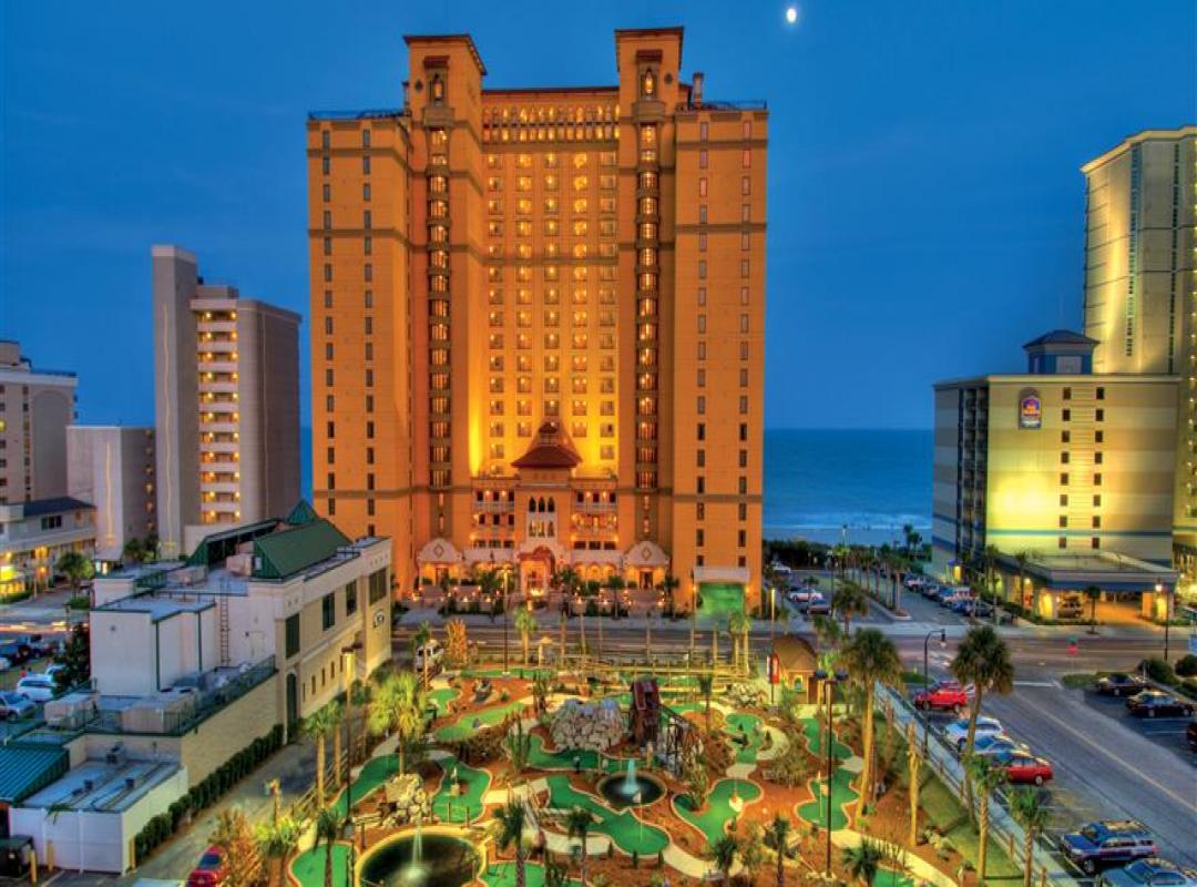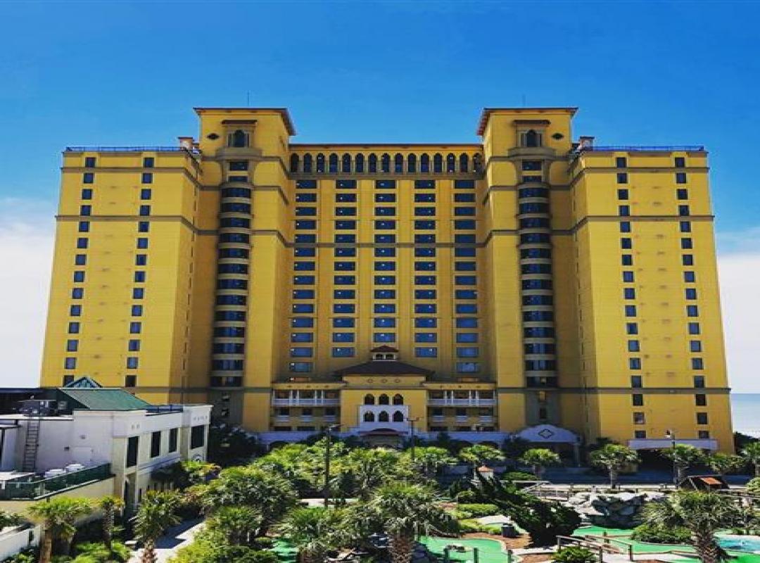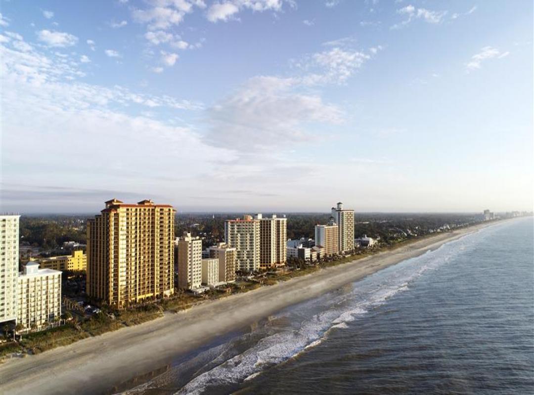 Spacious studios 1-, 2- and 3-bedroom suites with fully equipped kitchens and private balconies Family-friendly seaside escapes start here with lots of amenities to help you make the most of your time in Myrtle Beach including resort-style pools, a lazy river, full-service spa, state-of-the-art fitness center, and a seasonal pool bar and restaurant. STUDIOS Size: 474 sq. ft. Accommodates: 2 guests Comfortable studios offer partial ocean views with a private balcony and features a king-size bed, full bathroom, fully equipped kitchen with dining table and two chairs, a flat-screen TV and washer/dryer. 1-BEDROOM SUITES Size: 673 sq. ft. Accommodates: 4 guests Spacious 1-bedroom/1-bathroom oceanfront suite with a private balcony features a king-size bed and full bathroom. The suite also offers a living room with a full-size sleeper sofa, fully equipped kitchen with a dining area, table and two chairs and a bench/booth seating, and washer/dryer along with two flat-screen TVs. 2-BEDROOM SUITES Size: 1,167 sq. ft. Accommodates: 6 guests Spacious 2-bedroom/2-bathroom oceanfront suite with a private balcony features a king-size bed and walk-in shower. The second bedroom has two queen-size beds and shower/tub combo. The suite also offers a comfortable living area with a queen-size sleeper sofa, fully equipped kitchen with a dining area, table and six chairs, and washer/dryer along with three flat-screen TVs. 3-BEDROOM SUITES Size: 1,411 sq. ft. Accommodates: 8 guests Spacious 3-bedroom/3-bathroom oceanfront suite with private balcony features a king-size bed and walk-in shower. The second bedroom has two queen-size beds and shower/tub combo. The third bedroom has a king-size bed along with a shower/tub combo. The suite also offers a comfortable living area with a queen-size sleeper sofa, fully equipped kitchen with a dining area, table and six chairs, and washer/dryer along with four flat-screen TVs.