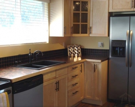 New maple kitchen with all stainless appliances including dishwasher, full size fridge/freezer, microwave and stove. There is a large island for food preparation and a separate dining room…(which is also a great place to play cards or board games). We have extreme high-speed internet / cable TV…. so bring your lap top and stay connected!